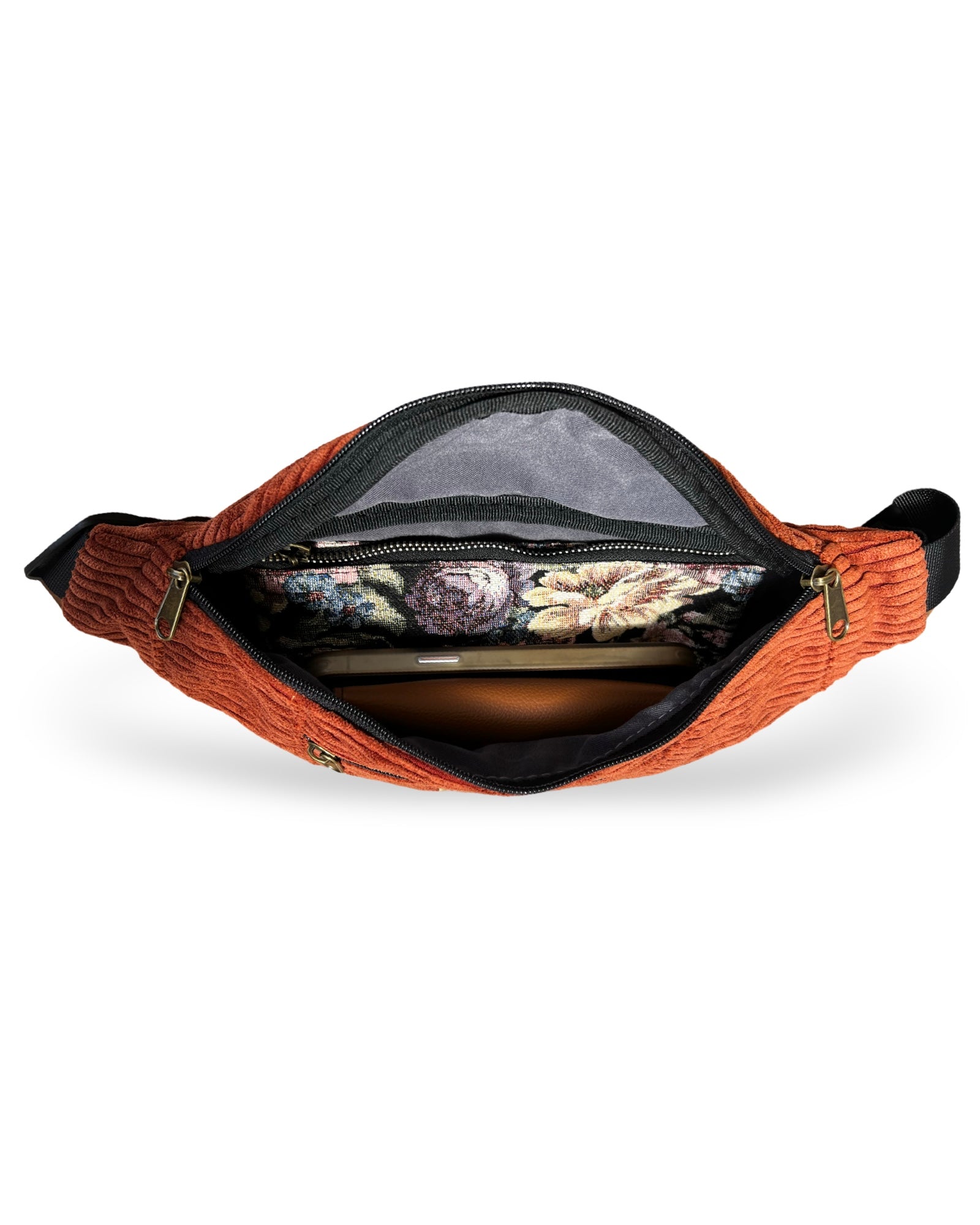 - פאוץ' גדול לנשים וגברים הכולל 3 תאים – תא מרכזי גדול ועוד שני תאים קטנים עם רוכסן - אחד מקדימה ואחד מאחורה